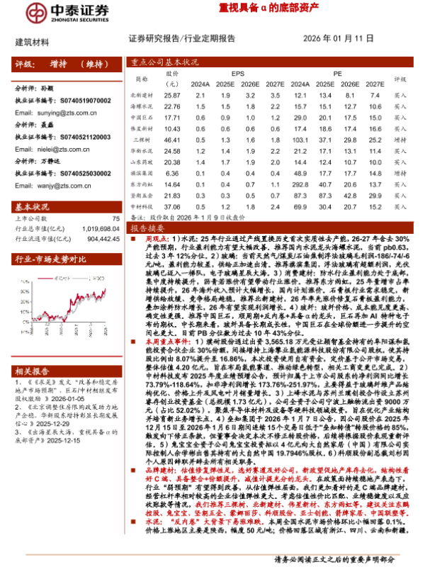 【中泰证券】【202601】建筑材料:重视具备α的底部资产-19页