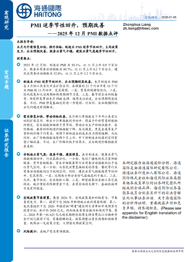 【海通国际】【202601】2025年12月PMI数据点评:PMI逆季节性回升,预期改善-13页