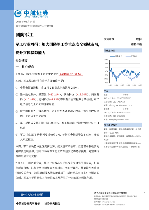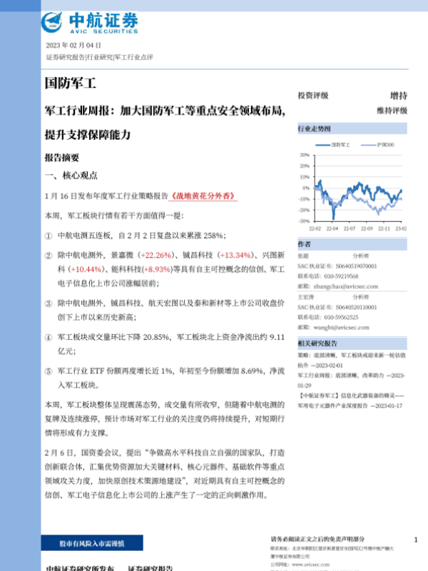 【中航证券】【20230204】军工行业周报:加大国防军工等重点安全领域布局,提升支撑保障能力-62页