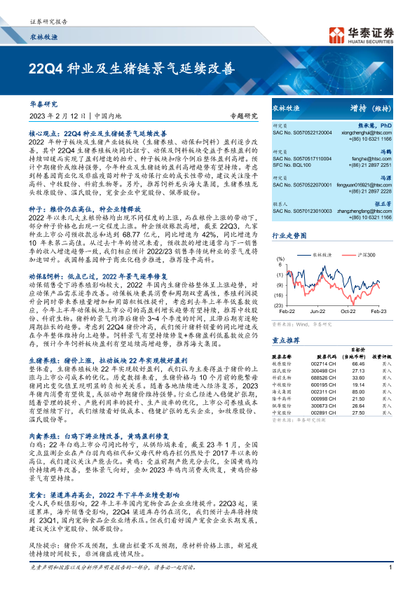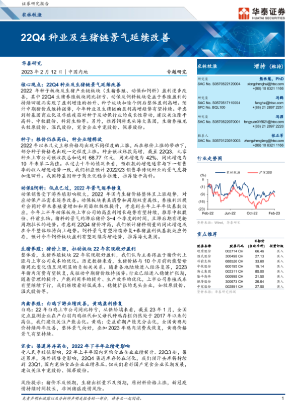 【华泰证券】【20230212】农林牧渔行业专题研究:22Q4种业及生猪链景气延续改善-27页