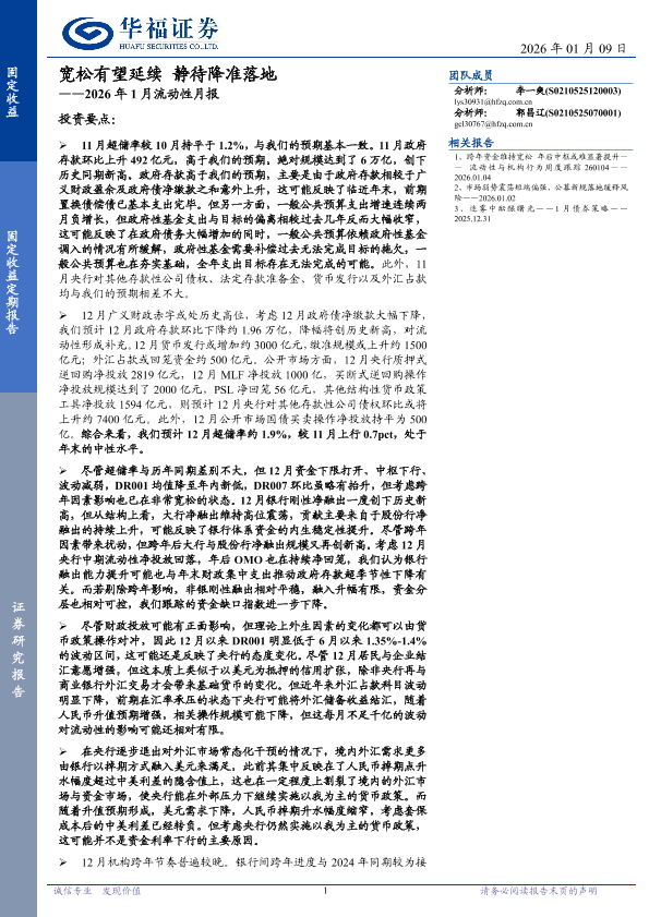 【华福证券】【202601】宽松有望延续静待降准落地——2026年1月流动性月报-20页