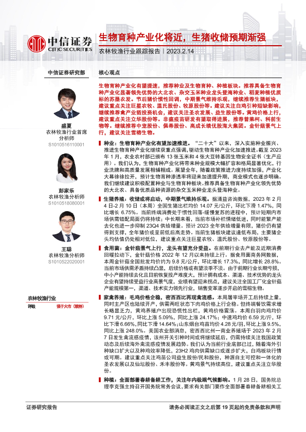 【中信证券】【20230214】农林牧渔行业证券研究报告:生物育种产业化将近,生猪收储预期渐强-21页