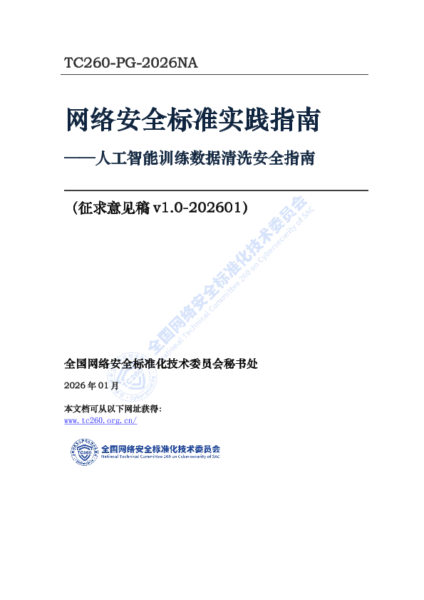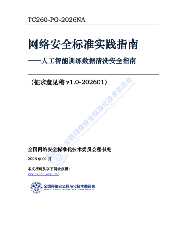 【全国网络安全标准化技术委员会秘书处】【202601】网络安全标准实践指南——人工智能训练数据清洗安全指南-25页
