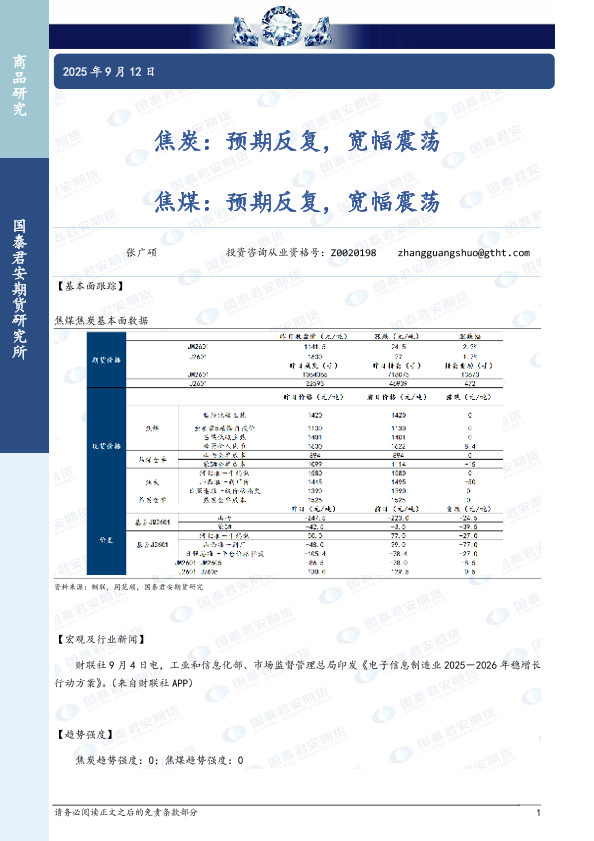 【国泰君安期货】【202509】焦炭:预期反复,宽幅震荡 焦煤:预期反复,宽幅震荡-2页