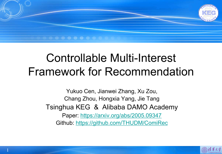 【Tsinghua University&Alibaba DAMO Academy】【2020】Controllable I Multi-Interest Framework for Recommendation-20页