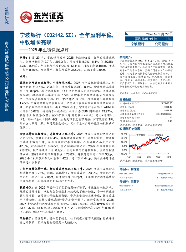 【东兴证券】【202601】宁波银行(002142.SZ):全年盈利平稳,中收增长亮眼——2025年业绩快报点评-6页