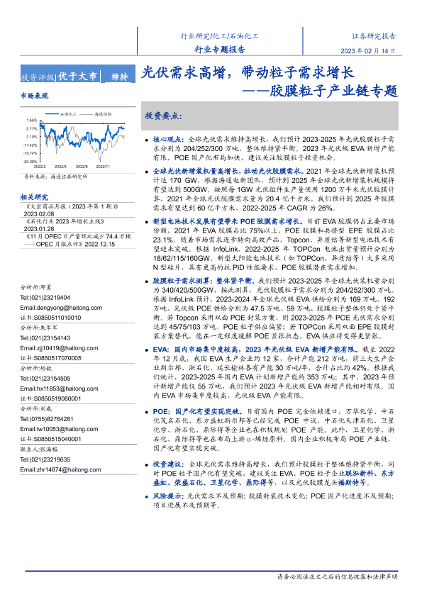 【海通证券】【20230214】化工行业胶膜粒子产业链专题:光伏需求高增,带动粒子需求增长-33页