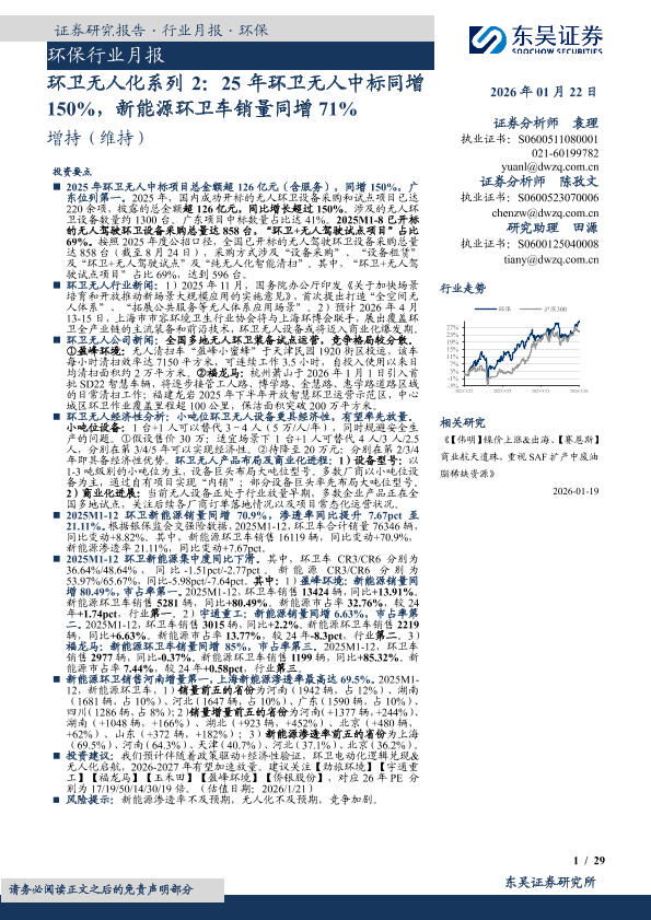 【东吴证券】【202601】环保行业月报·环卫无人化系列 2:25年环卫无人中标同增150%,新能源环卫车销量同增71%-29页