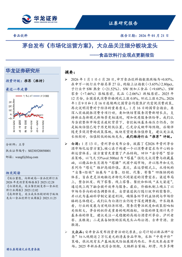 【华龙证券】【2026】茅台发布《市场化运营方案》,大众品关注细分板块龙头——食品饮料行业观点更新报告-15页