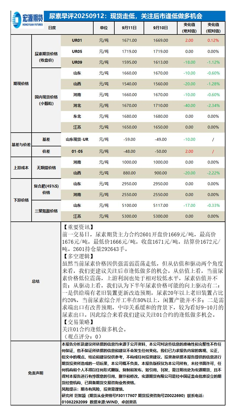 【宏源期货】【202509】尿素早评:现货走低,关注后市逢低做多机会-1页