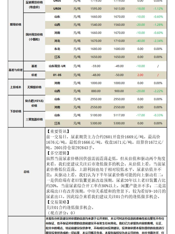 做多机会 尿素 现货价格 期货分析 供需分析
