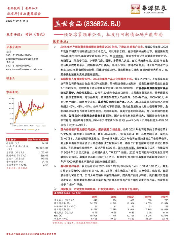 【华源证券】【202509】预制凉菜领军企业拟发行可转债加码产能布局-18页