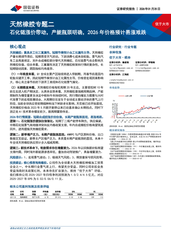 【国信证券】【202601】天然橡胶专题二:石化链涨价带动,产能瓶颈明确,2026年价格预计易涨难跌-23页