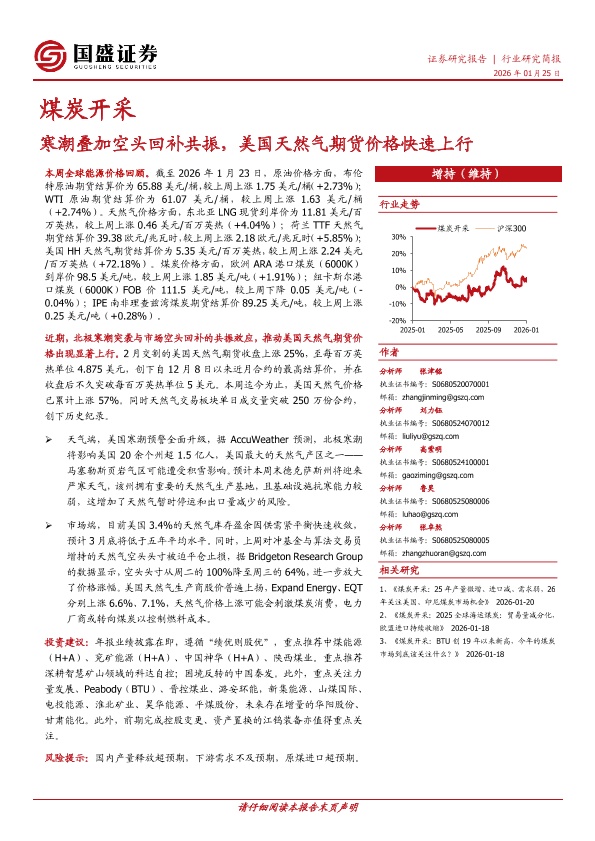 【国盛证券】【202601】煤炭开采_寒潮叠加空头回补共振_美国天然气期货价格快速上行-12页