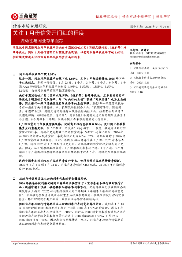 【浙商证券】【202601】关注1月份信贷开门红的程度——流动性与同业存单跟踪-12页