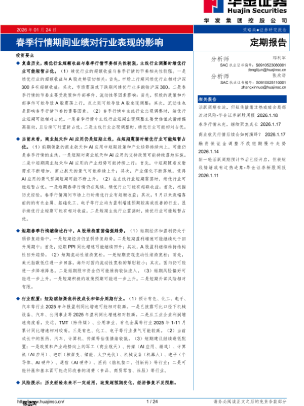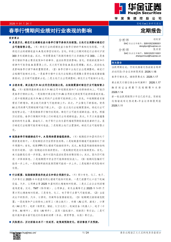 【华金证券】【202601】春季行情期间业绩对行业表现的影响-24页