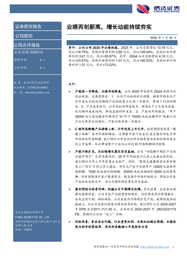 阿洛酮糖 百龙创园 投资评级买入 产能扩张 膳食纤维