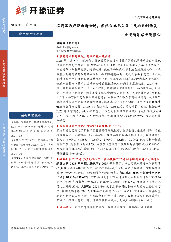 【开源证券】【202601】农药落后产能出清加速,聚焦合规龙头集中度与盈利修复-14页
