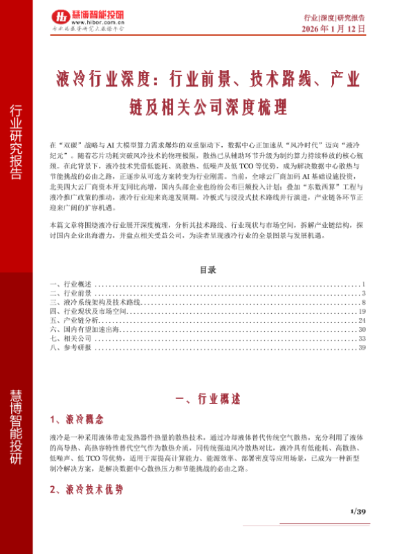 【慧博智能投研】【202601】液冷行业深度:行业前景、技术路线、产业链及相关公司深度梳理-39页