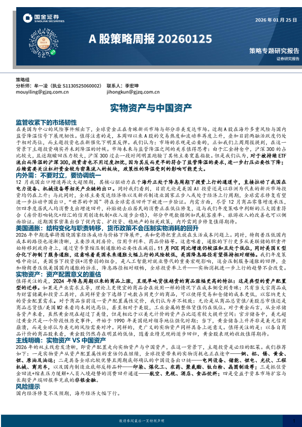 A股策略 商品上涨 中国资产 主题投资 实物资产