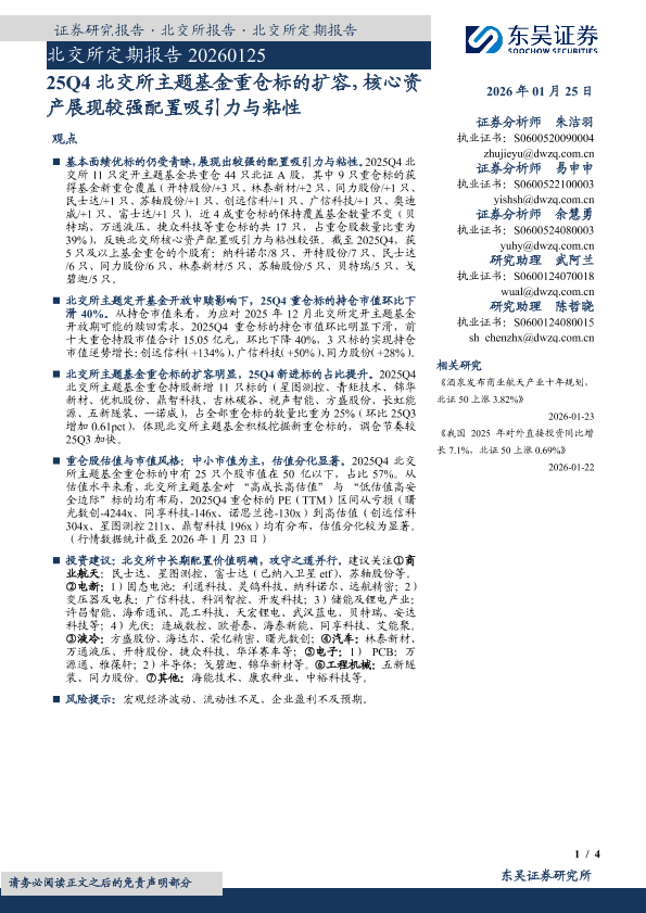 【东吴证券】【202601】25Q4北交所主题基金重仓标的扩容,核心资产展现较强配置吸引力与粘性-4页