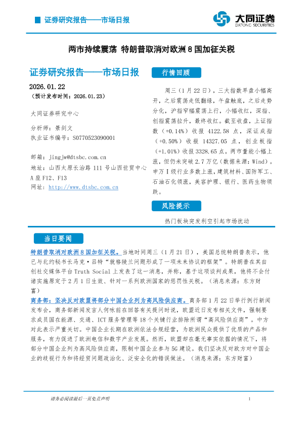 【大同证券研究中心】【202601】市场日报-5页