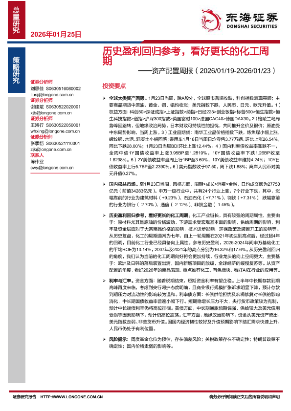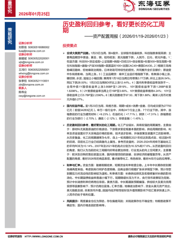 宏观经济 大宗商品 资产配置 行业研究 化工周期