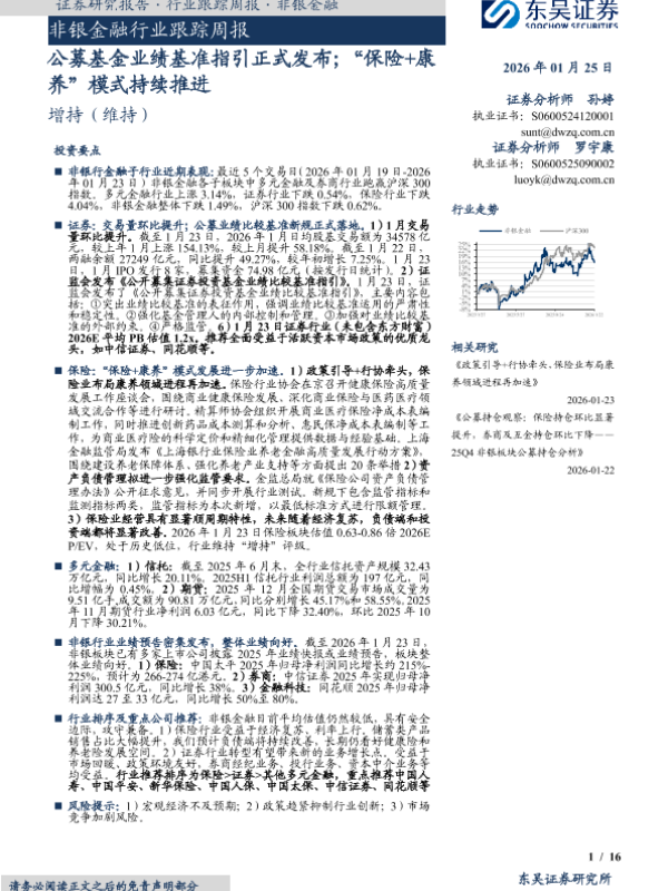 【东吴证券】【202601】非银金融行业跟踪周报·公募基金业绩基准指引正式发布;“保险+康养”模式持续推进-16页