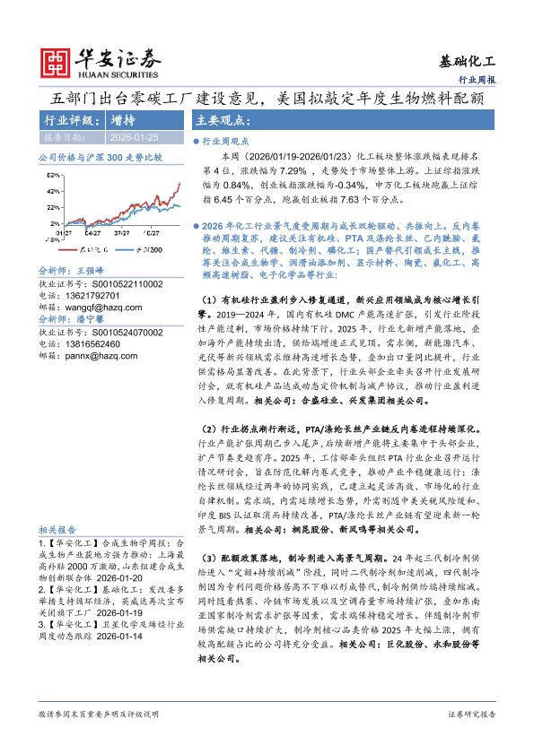 【华安证券】【202601】基础化工行业周报:五部门出台零碳工厂建设意见,美国拟敲定年度生物燃料配额-32页
