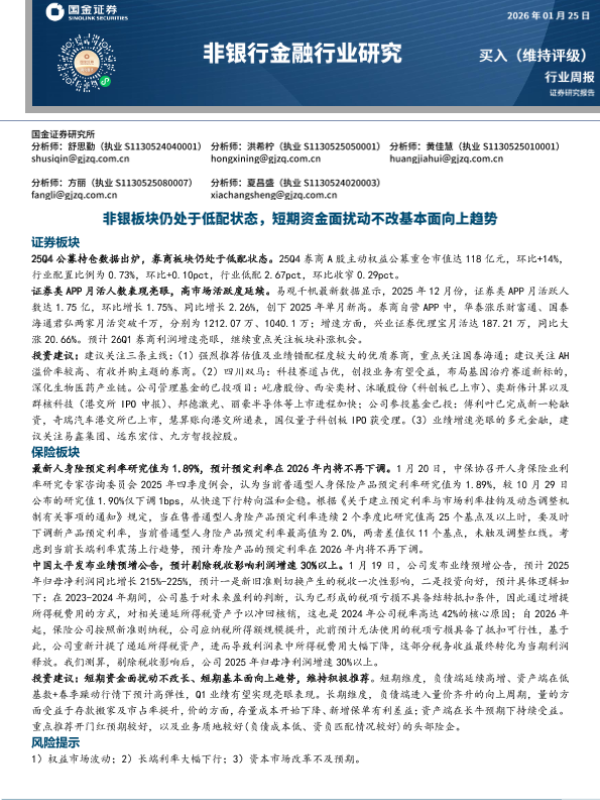 【国金证券】【202601】非银板块仍处于低配状态,短期资金面扰动不改基本面向上趋势-10页