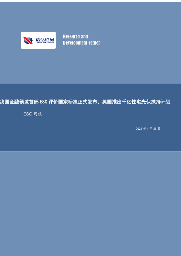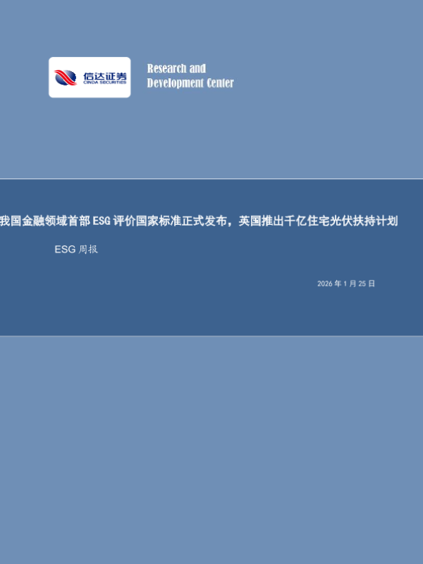 【信达证券】【202601】我国金融领域首部ESG评价国家标准正式发布,英国推出千亿住宅光伏扶持计划-12页
