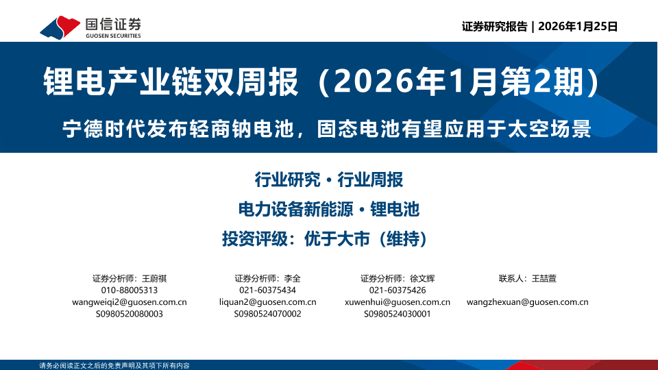 【国信证券】【202601】锂电产业链双周报(2026年1月第2期)-20页