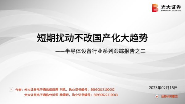 【光大证券】【20230215】半导体设备行业系列跟踪报告之二:短期扰动不改国产化大趋势-28页