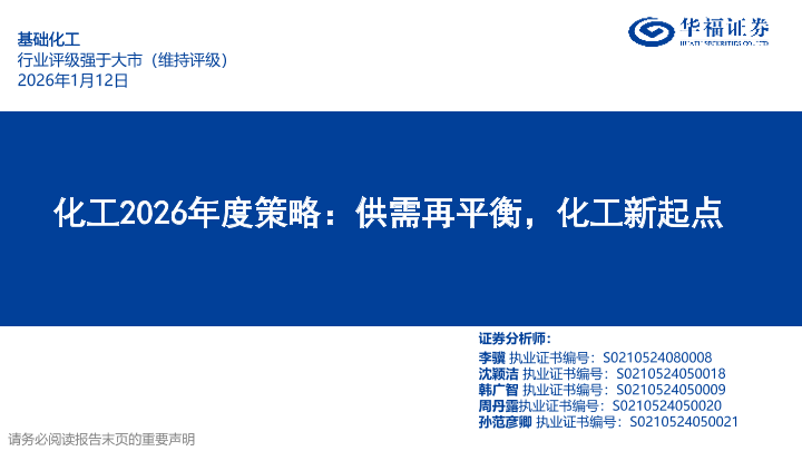 【华福证券】【202601】化工2026年度策略:供需再平衡,化工新起点-52页