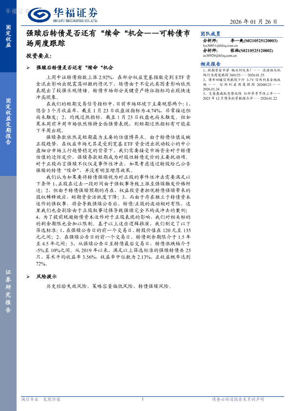 【华福证券】【202601】强赎后转债是否还有“续命“机会——可转债市场周度跟踪-7页