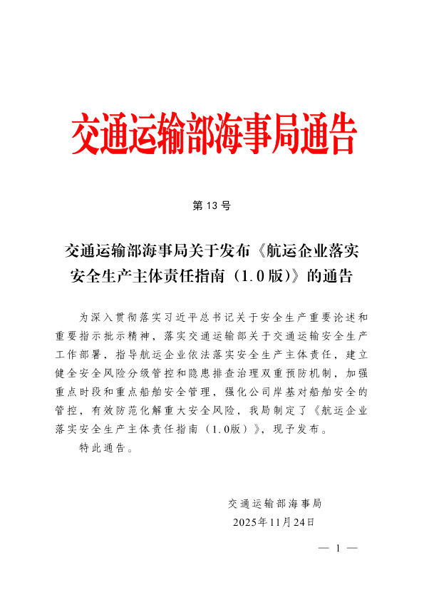 【交通运输部海事局】【202511】航运企业落实安全生产主体责任指南(1. 0版)-30页