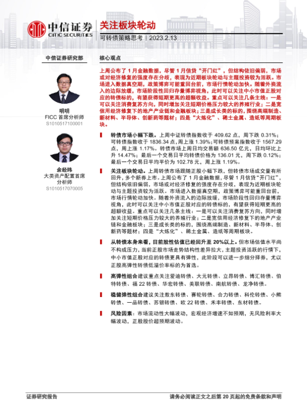 【中信证券】【20230213】可转债策略思考:关注板块轮动-21页