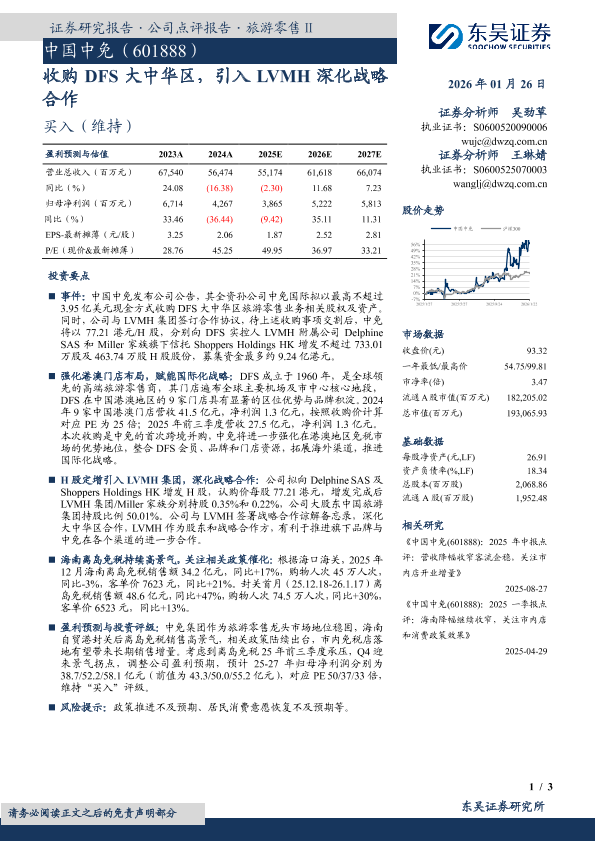 【东吴证券】【202601】中国中免(601888):收购 DFS大中华区,引入 LVMH深化战略合作-3页