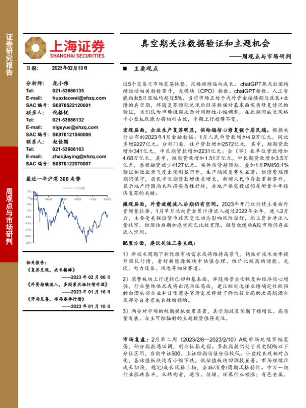 【上海证券】【20230213】周观点与市场研判:真空期关注数据验证和主题机会-15页