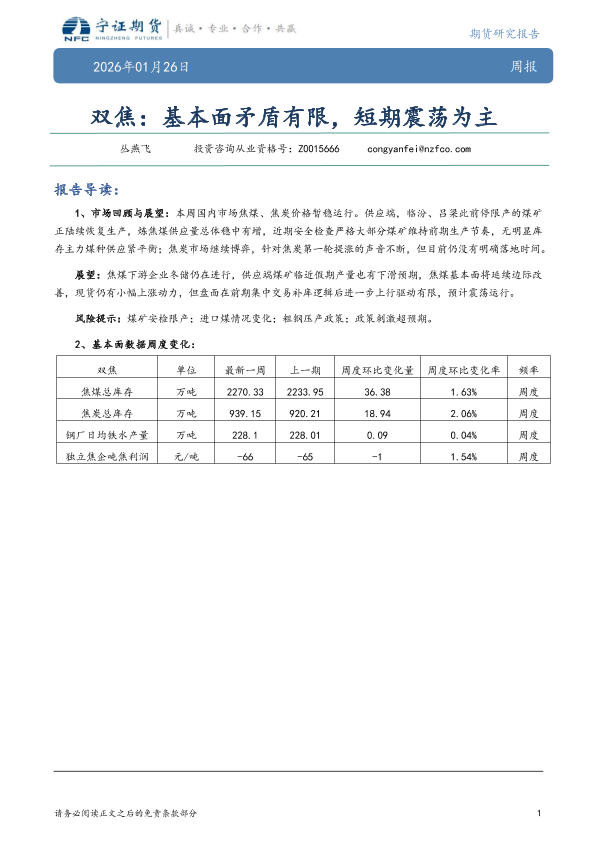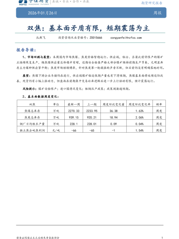 【宁证期货有限公司】【202601】双焦:基本面矛盾有限,短期震荡为主-5页