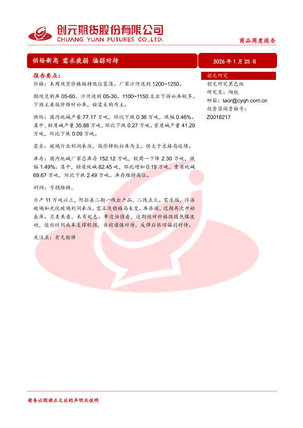 库存分析 需求分析 利润分析 纯碱 供给分析