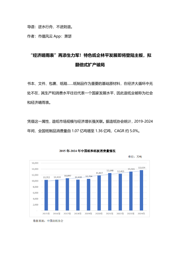 【市值风云 App】【2024】经济晴雨表再添生力军!特色纸企林平发展即将登陆主板,拟翻倍式扩产破局-14页
