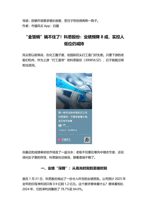 【市值风云 App】【202501】金饭碗端不住了!科思股份业绩预降8成 实控人低位仍减持-9页