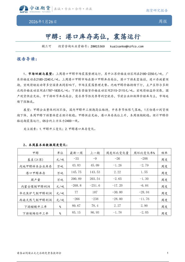 【宁证期货】【202601】甲醇:港口库存高位,震荡运行-5页