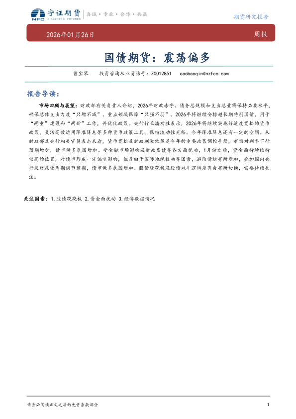 【宁证期货有限公司】【202601】国债期货:震荡偏多-5页