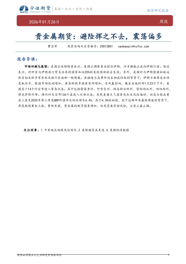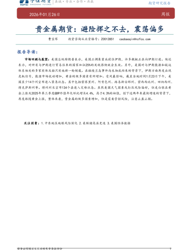 【宁证期货】【202601】贵金属期货:避险挥之不去,震荡偏多-6页