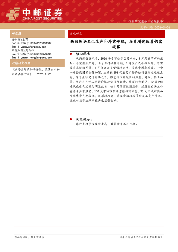 【中邮证券】【202601】高频数据显示生产和外需平稳,投资增速改善仍需观察-37页