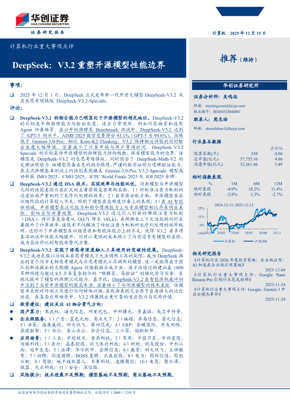 【华创证券】【202512】DeepSeek,V3.2重塑开源模型性能边界-11页