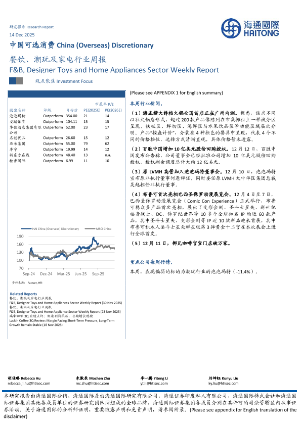 【海通国际】【202512】中国可选消费 China(Overseas) Discretionary 餐饮、潮玩及家电行业周报 F&B, Designer Toys and Home Appliances Sector Weekly Report-10页