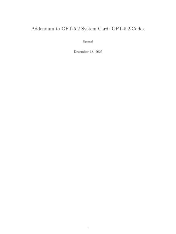 【OpenAI】【202512】Addendum to GPT-5.2 System Card GPT-5.2-Codex-22页